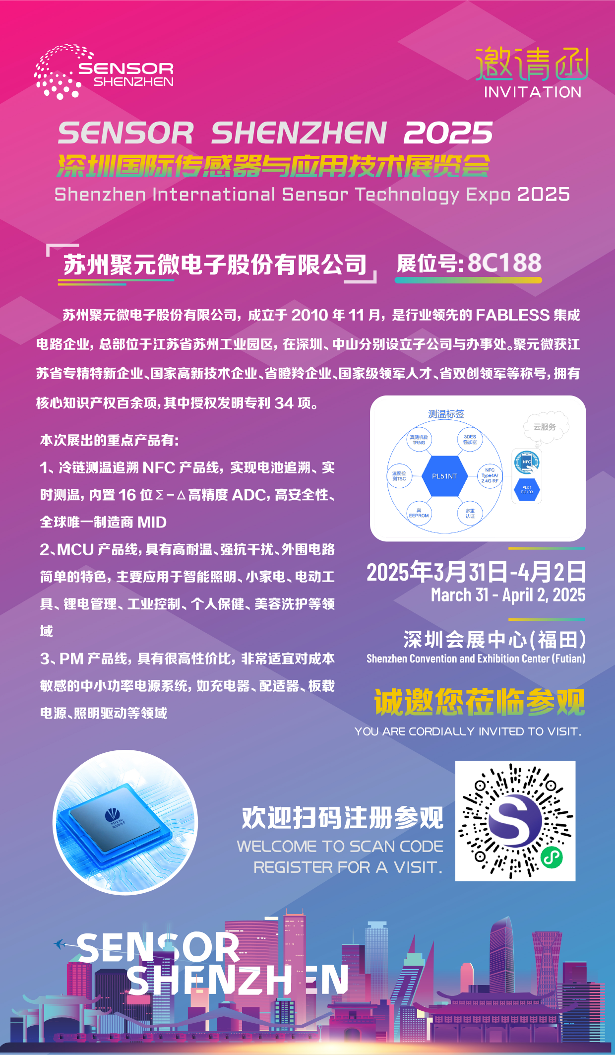2025年3月31日-4月2日,jcjc5500公海微电子将于深圳会展中心(福田)办展。诚邀各位朋友前来参展交流。